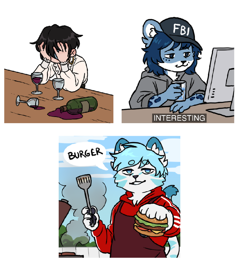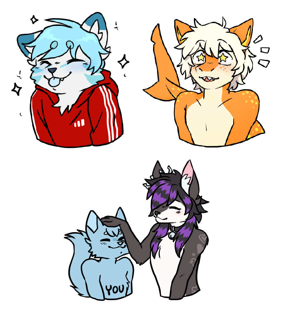 PRICES (per sticker)Animated Headshot Stickers: $15-$20Animated Bust/chibi Stickers: $20-$30Extra character: +50%